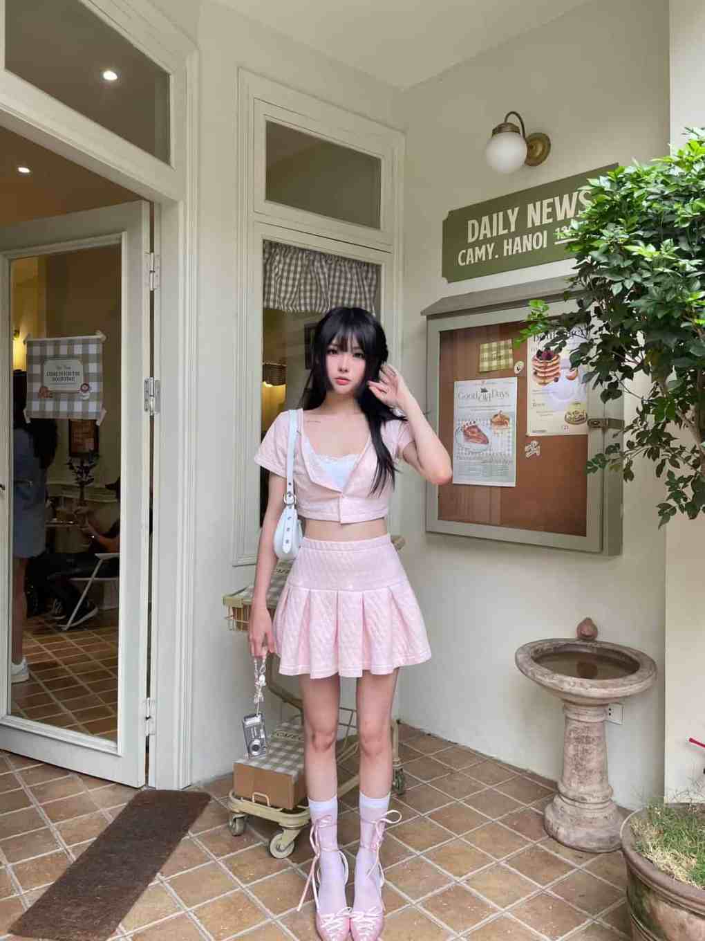 Với concept chụp street style, các bạn có thể diện những bộ outfit đường phố với phong cách Retro tại một số địa điểm như cổng trường học, quán cà phê hay chỉ đơn giản là ở ngõ đường xóm bạn.