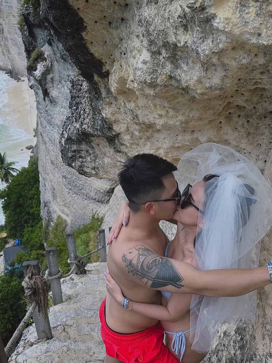 - Nụ hôn lãng mạn: Là một cách thể hiện tình yêu ngọt ngào của cặp đôi đang yêu, với cách pose dáng này, hai bạn có thể ôm nhau và trao một nụ hôn tự nhiên, nàng có thể đưa tay lên gò má hoặc đôi vai để tăng sự duyên dáng và giúp cho tổng quan của bức ảnh gắn bó hơn.