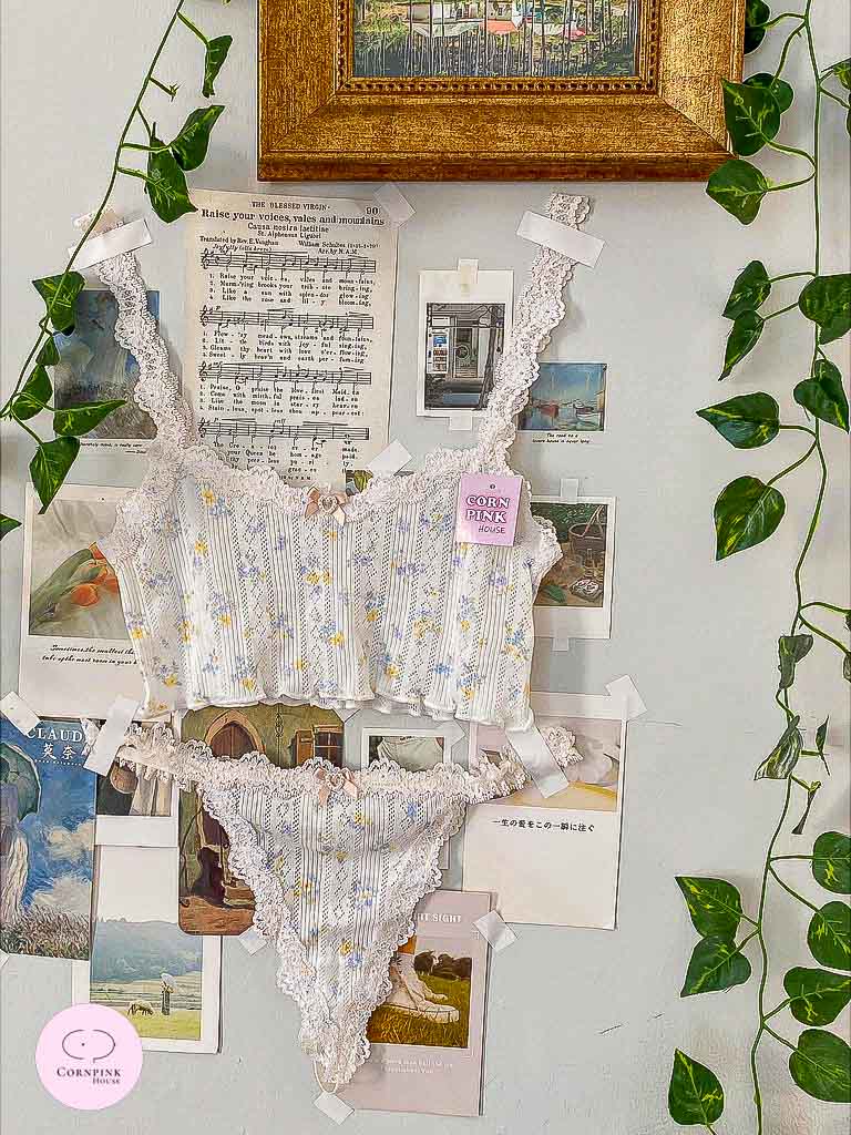 Đồ lót hai dây cotton, áo ngực, và áo cardigan hoa nhí | Flower Hoa Cỏ